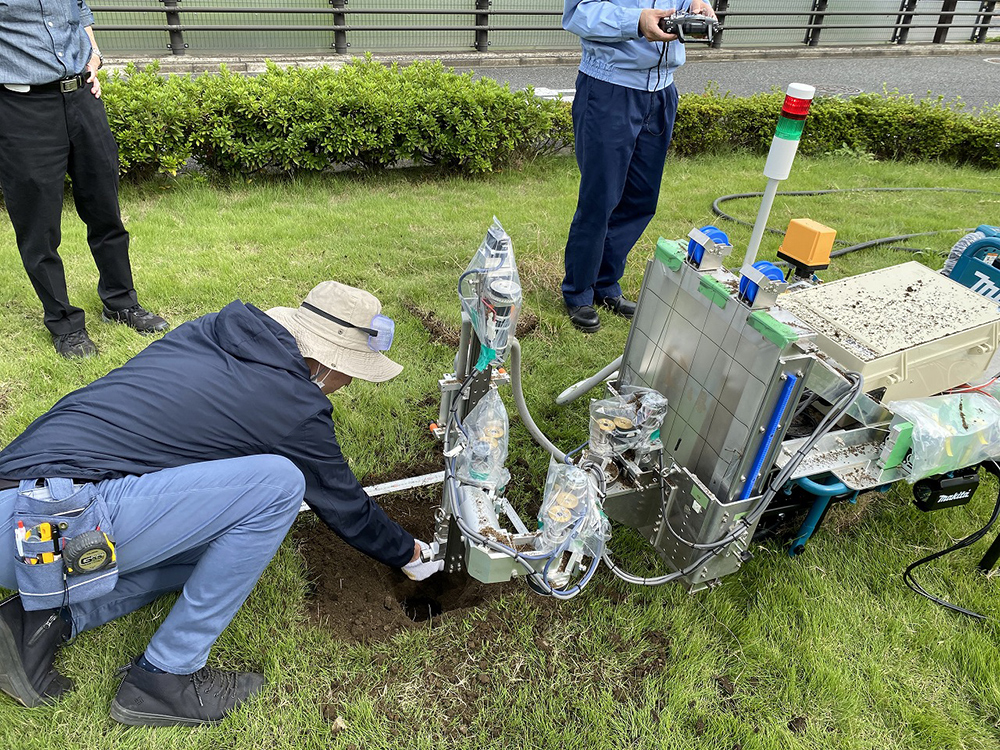 今井 当初は、3K(キツイ、汚い、危険)の職場を、テクノロジーを使って手助けできないかと、ソーラー発電所の除草や橋梁点検の自動化ロボット等の研究・開発を行っていました。こういうことを自動化できれば社会がもっと豊かになるのではないか、こういうロボットを開発したら世の中が面白くなるのではないかなど、ロボットの可能性をいろいろと模索していた時期に、JICAと面談の機会を得て、DMRの研究・開発につながるお話をいただきました。